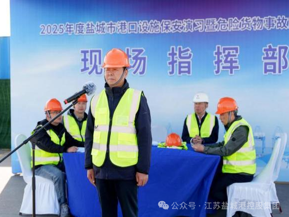 演練開始前,鹽城港集團黨委委員、副總經理丁安廣作動員講話。演練結束后,現場總指揮、鹽城市交通運輸局副局長丁勝宣布應急響應終止,并作總結講話。他指出,此次演練有效檢驗了全市港口設施保安與危險貨物事故應急預案的科學性和實用性,鍛煉了應急救援隊伍的實戰能力,提升了跨部門、跨層級的協同處置水平。他強調,要以此次演練為契機,進一步查找不足、完善機制、壓實責任,持續提升港口安全保障能力和應急管理水平,為鹽城港航事業高質量發展筑牢堅實安全屏障。