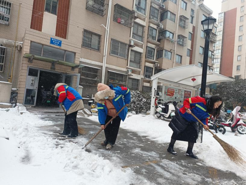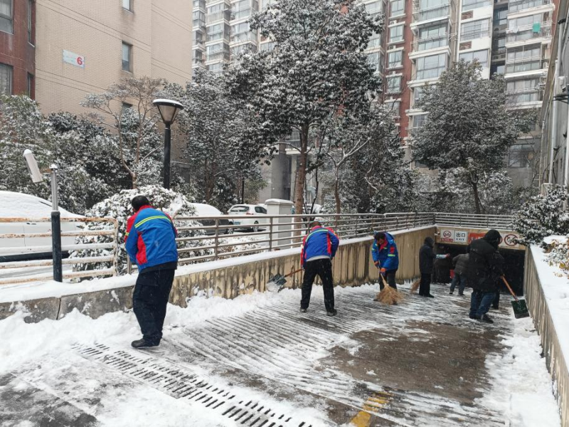 持續雨雪冰凍天氣,氣溫驟降至零下,道路積雪結冰給群眾出行和校園安全帶來嚴峻考驗。鹽港物業第一時間響應,在居民小區,工作人員頂風冒寒,手持鐵鍬、掃帚在晨光熹微中集結,分工協作清掃樓門通道、地下車庫坡道等關鍵區域。物業客服、保潔部門的女員工組成“巾幗除雪隊”,清掃積雪后及時撒布融雪鹽,用“巾幗不讓須眉”的擔當守護每一位業主的出行安全。面對業主車輛打滑被困的突發狀況,工作人員火速上前,清掃冰雪、指揮調度,默契配合幫助車輛成功脫困,用及時援手傳遞服務溫度。